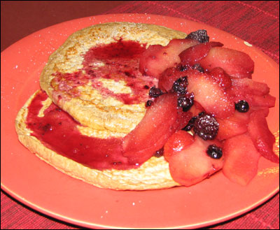 Pfannkuchen mit Apfel-Beeren-Kompott und.....