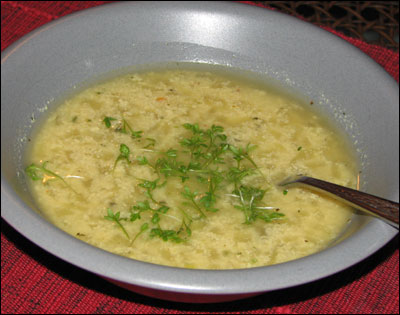 Joghurtsuppe hatte ich noch nie, aber sie war prima - gewürzt mit Minze und Pfeffer - ein Geschmacksfeuerwerk zu den zimtigen Pfannkuchen mit Beeren.