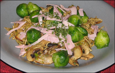 Abendessen - Champignon-Schinken-Pfanne (385 kcal) - ei, die war fein. Dazwischen gerührt, etwas Käse und leichtes Sähnchen.. dat braucht es einfach hin und wieder. Parmaschinken war vorgeschlagen, hatte ich vergessen zu kaufen - macht nix, ich bin pappesatt.