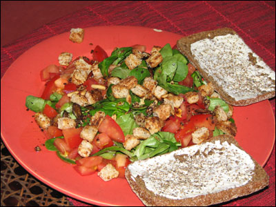 Mittag - Tomaten-Feldsalat mit Knoblauchcroutons (204 kcal) Toastis mit bissken Frischkäse gehen extra