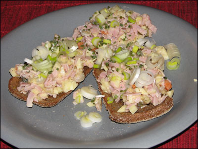 Ich mag diese Vollkorntoastis - drei Stück sind 100g - und schon liegt da ein bisschen mehr auf dem Teller, als mit 100 g normalem Vollkornbrot (wie es im Rezept vorgeschlagen wird).