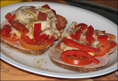 Kräuterrührei-Brot (eigentlich als Frühstück vorgeschlagen - umfunktioniert zum Abendessen mit einer zweiten Scheibe Vollkornbrot ) 344 kcal