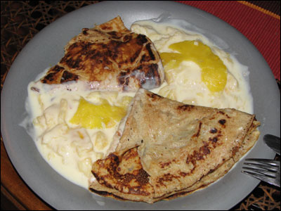 Zum Abendessen gabs wieder einen Tellerfüller: Ananas-Crèpes (438 kcal) - apropos Tellerfülle, liebe