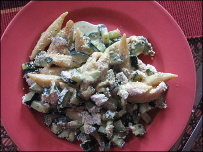 Mein Mittagessen: Parmesan-Nudeln mit Zucchini (443kcal) - wir hatten uns schon mal :-) aber das Gericht war so lecker, dass ich es noch einmal kochen wollte. Dieses Mal, wie im Rezept vorgeschlagen mit Schupfnudeln. Ich hatte von hier noch einiges über.