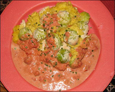 Heute für das Rosenkohl-Polenta-Gratin (456 kcal) - ich kann kaum mehr papp sagen, so satt bin ich - nur gut, dass ich beim Schreiben nicht sprechen muß :-)