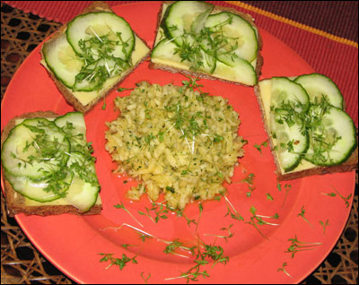 Damit es noch bisschen hübscher aussieht - das Auge isst ja mit - und noch bisschen gesünder wird: Kresse