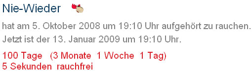 Ich bin inzwischen 8 Tage 12 Std. rauchfrei ( Danke für den extern.gifTool-Tipp, liebe extern.gifFrau Waldspecht).
