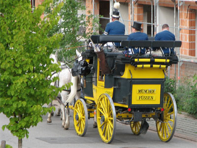Ich vermute ja schwer, dass mein Wohnhaus an einer Teilstrecke der königlich bayerischen Postkutschenstrasse (die gibbet doch,oder?) liegt. Hier fahren ständig und dauernd Postkutschen vorbei. Keine Ahnung woher... keine Ahnung wohin, aber fahren tuten sie.