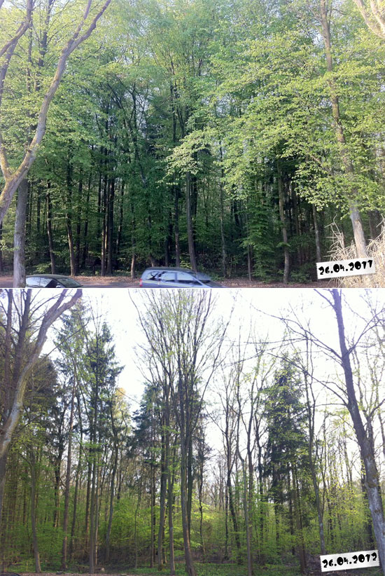 timehop (What were you doing 1 year ago today?), dass ich vom Wäldchen gegenüber auf Facebook geschrieben habe - inkl. einem Foto. Vor einem Jahr war mir also auch nach "mach mal ein Foto von diesem herrlichen Frühlingsgrün". ;-)
