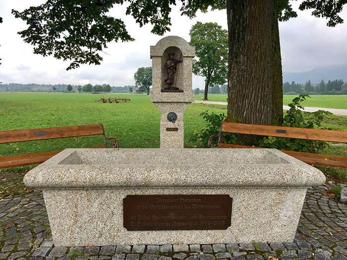 Und wenn man nun auf der einen Seite der Strasse St. Coloman sieht, kann man sich mit Blick auf die andere Strassenseite über Schloss Neuschwanstein freuen.