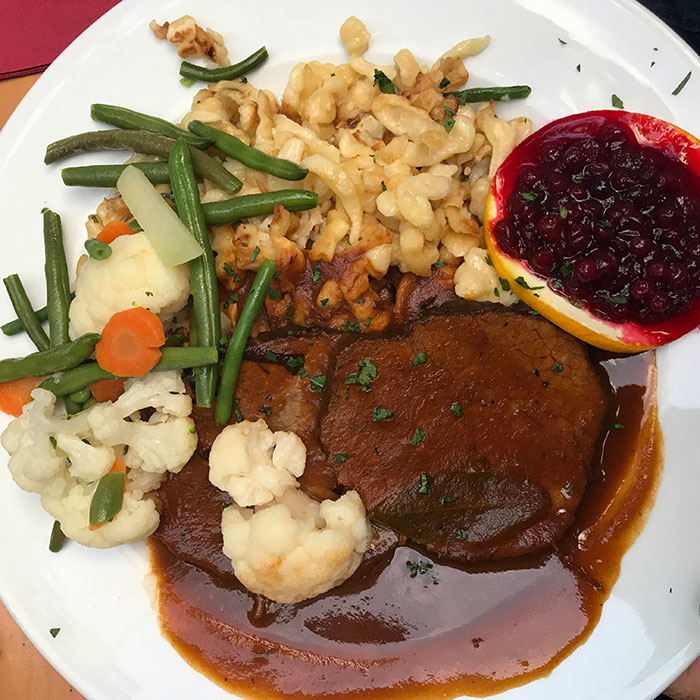 Böfflamot ist ein traditionelles Fleischgericht der bayerischen Küche. Auch das steht auf der Karte und es hat geschmeckt! Den Herren.