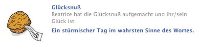 In Facebook gibt es die ein oder andere nette Spielerei, wie z.b. diverse Orakel... ich bediene mich meistens der Glücksnuß ;-) Gestern meinte sie: