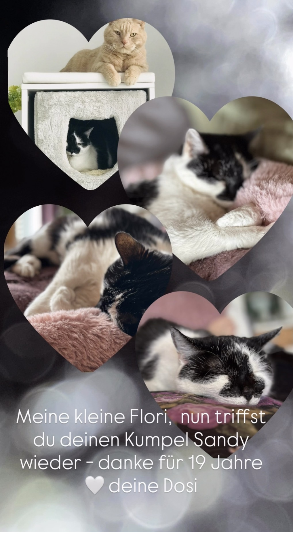 Deine zwei Süßen hatten ein schönes, langes Leben, liebe Bea. Dir bleiben die Erinnerungen, auch wenn es erstmal schmerzt, dass nun auch die kleine Flori von Dir gegangen ist.