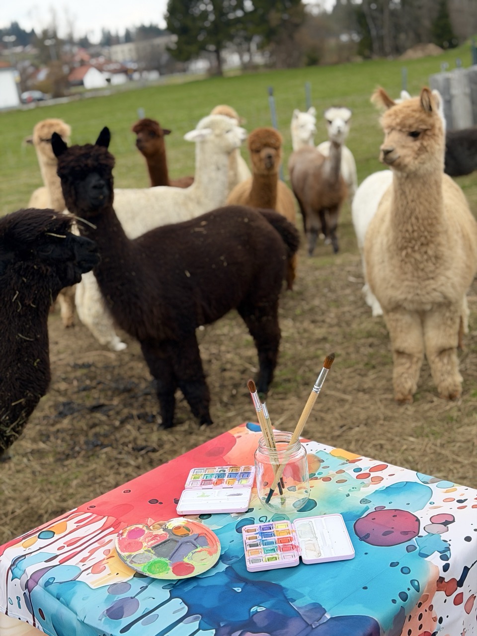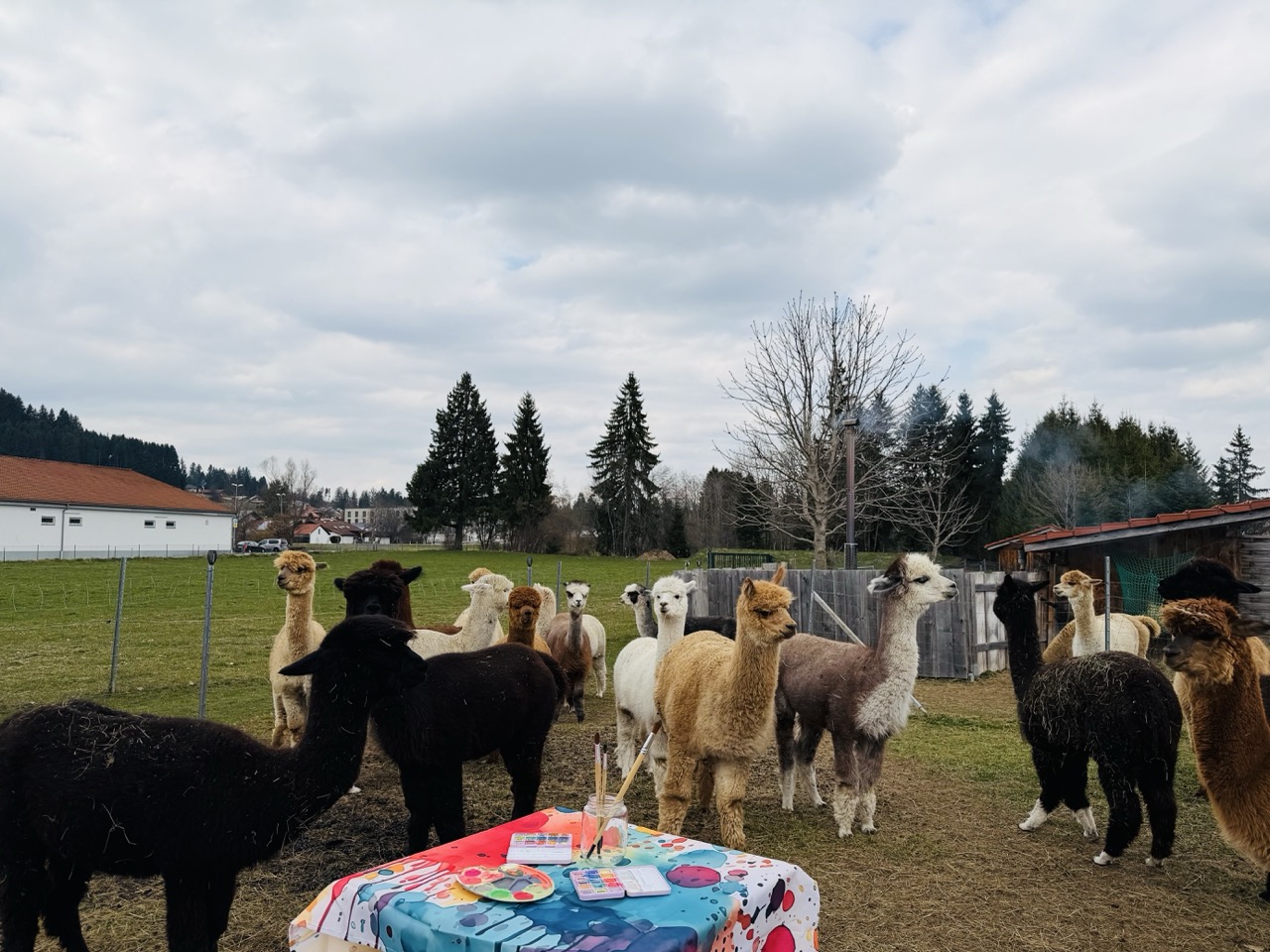 Vor kurzem hab ich den Hof der AlpenAlpakas besucht und wir haben unser Plänchen geschmiedet. Es sind ausserdem einige tolle Fotos entstanden. Neugierig beäugen die Mädels den Maltisch und sind zum Teil so zutraulich. Wer verliebt sich da nicht sofort in diese wunderbaren Tiere?