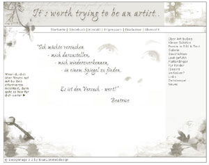 Am Design hab ich nichts verändert, weil ich die Seite immer noch so mag, wie sie ist. Es ist erstaunlich, was sich an Inhalten ansammelt und das wird einem auch erst bewusst, wenn man eine gesamtes Projekt neu anlegt. Das Schöne an der Technik - ich kann nun um vieles schneller Neues einarbeiten und muß nicht erst lokal im html rumkramen, muß nix mehr hochladen, sondern mach alles nur noch online - im RatzfatzModus. Danke auch an Silvio, der mir behilflich war, alles, in recht kurzer Zeit, an seinen rechten Platz zu schaffen. (Klingt schon wieder wie bei einer Oscar-Verleihung ;-))..) Ich freu mich. :-))